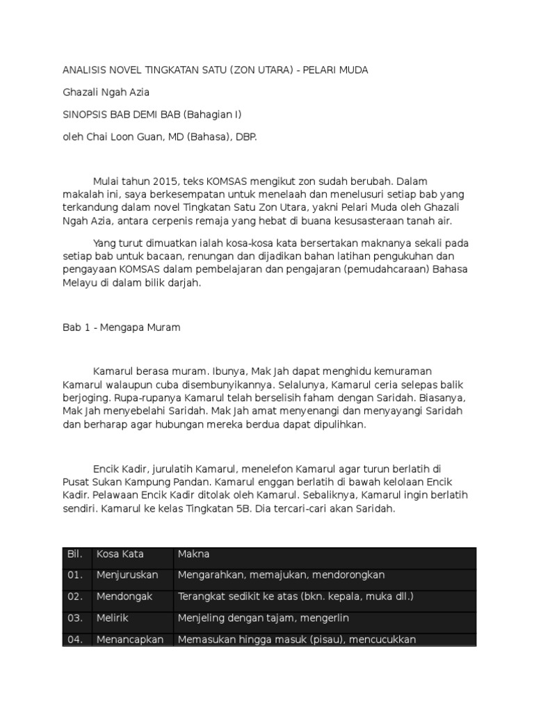 Sinopsis Novel Pelari Muda Tingkatan 1 - Tugasan Cuti Akhir Semester 2 Tahun 2018 By Adani / Sinopsis bab 4, 5, 6 (novel tingkatan 1) sinopsis bab 4 mak jah memerhatikan gelagat anaknya ketika kamarul hendak keluar berjoging.